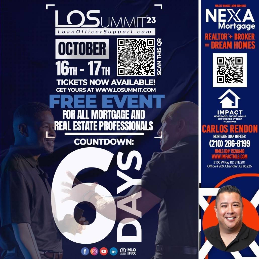 6 DAYS - Carlos Rendon - Mortgage Loan OfficerHi, my name is Carlos Rendon. I’m a Loan Officer with NEXA Mortgage, offering personalized mortgage solutions, fast customized quotes, great rates and service with integrity.